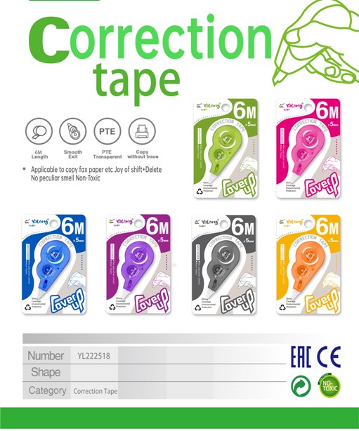 Διορθωτική ταινία 5mm, μήκους 6m, σε διάφορα χρώματα. Τυχαία επιλογή χρώματος.