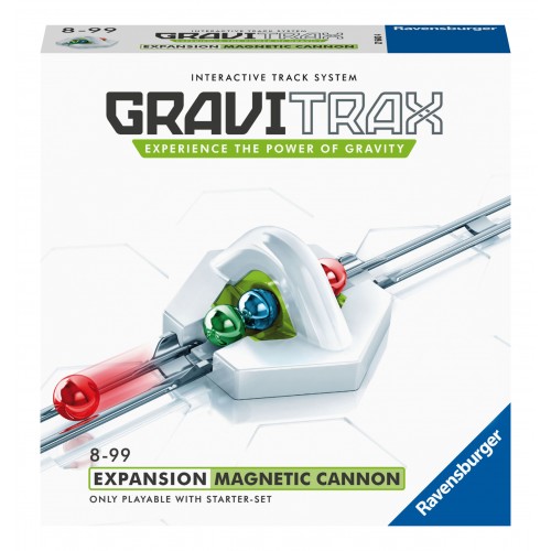 Εκτόξευσε τη μπίλια σου ακόμα και κατά τη διάρκεια της διαδρομής προσθέτοντας το Κανόνι. Ο μαγνήτης με τη μεγάλη ισχύ δίνει στη μπίλια σου την ταχύτητα που χρειάζεται για να συνεχίσει για περισσότερη ώρα την τροχιά της και τη βοηθά να διασχίζει διαδρομές με μεγάλη κλίση. Παίζεται μόνο με το GraviTrax Starter-Set.