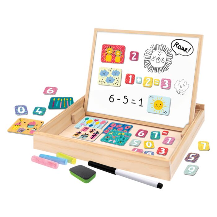 Ο μαγνητικός επιτραπέζιος πίνακας HappiHobbi είναι ένα εύχρηστο ξύλινο κουτί που μεταμορφώνεται σε μαγνητικό πίνακα ζωγραφικής δύο όψεων. Αποτελεί ιδανική απασχόληση για το παιδί εντός σπιτιού αλλά κι εκτός αυτού, χάρη στο πρακτικό μέγεθός του. Το παιδί δημιουργεί αλλά και εκπαιδεύεται στην αναγνώριση αριθμών μέσω των μαγνητών που περιλαμβάνονται.
