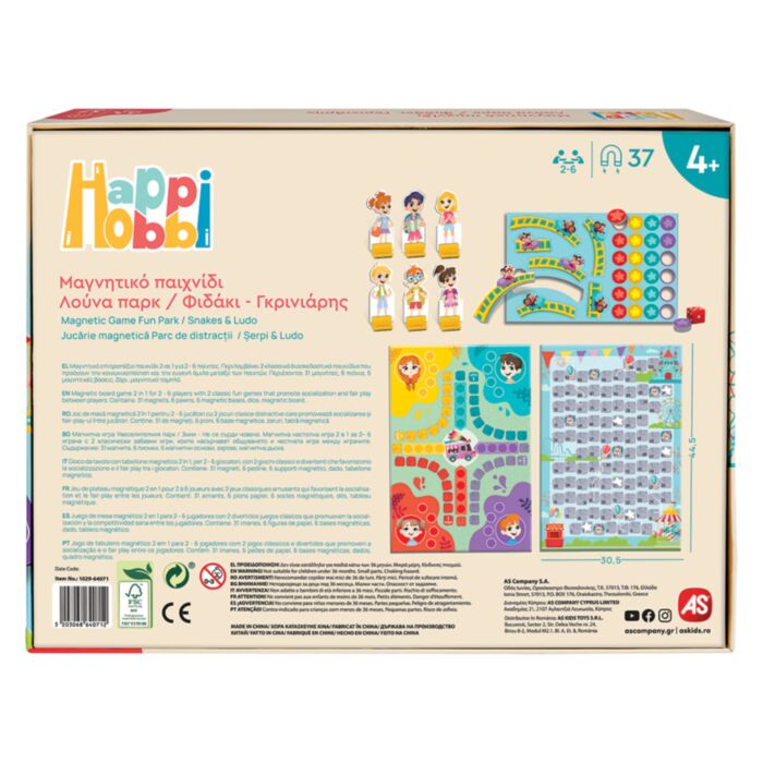 Μαγνητικό παιχνίδι Λούνα Παρκ / Φιδάκι – Γκρινιάρης με 31 μαγνήτες και διπλό μαγνητικό ταμπλό με 6 μαγνητικούς χαρακτήρες και ζάρι. Διέσχισε πρώτος το λούνα παρκ για να φτάσεις στο κάστρο (προσοχή στα τραινάκια που προσπαθούν να σε καθυστερήσουν!) ή βάλε πρώτος όλα τα πιόνια σου στις θέσεις τερματισμού (βάζοντας εμπόδια στον κύκλο διαδρομής του αντιπάλου) για να φτάσεις στο μαγαζί με τα παγωτά και διασκέδασε παίζοντας τα κλασσικά παιχνίδια Φιδάκι – Γκρινιάρης.