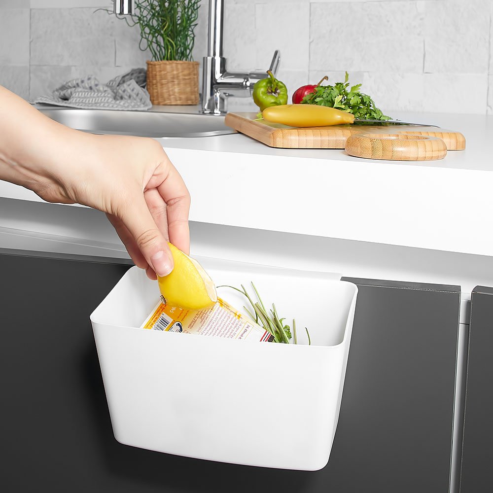 Πλαστικό καλάθι κρεμαστό για τις πόρτες τις κουζίνας και για πολλές άλλες διάφορες χρήσεις σε λευκή απόχρωση.