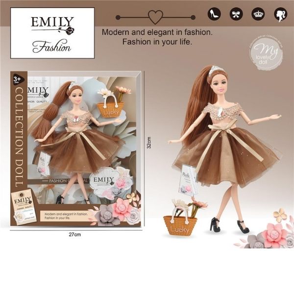 Κούκλα Μανεκέν 29cm Με Φούστα Καφέ Τούλι & Τσάντα