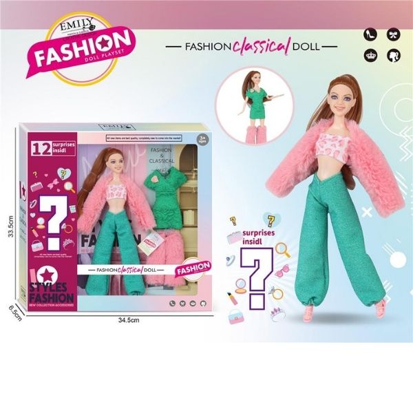 Κούκλα Μανεκέν 29cm Με Ροζ Παλτό & Αξεσουάρ-Έκπληξη