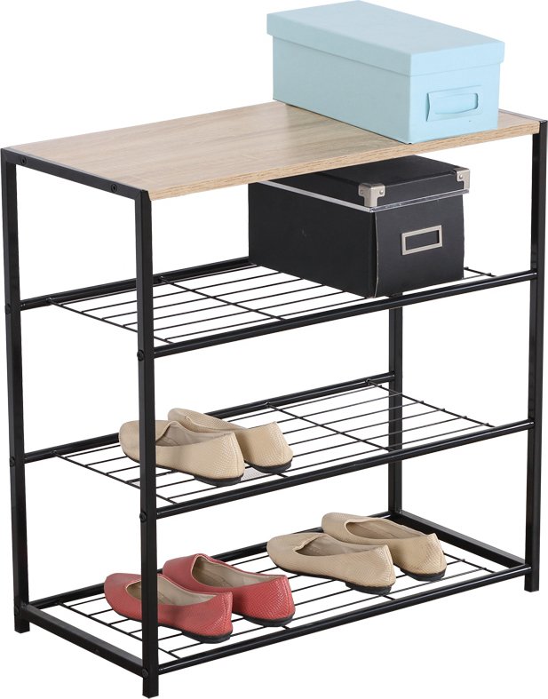 Παπουτσοθήκη μικροέπιπλο δαπέδου με μεταλλική βάση και ξύλινη επιφάνεια μεγάλης χωρητικότητας.