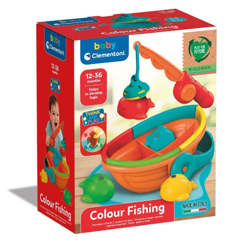Τέσσερα χαρούμενα ψαράκια που περιμένουν να τα ψαρέψουν και να τα βάλουν στη βάρκα ανάλογα με το χρώμα τους! Ένα κλασικό παιχνίδι σε πιο εξελιγμένη μορφή, φιλικό προς τα παιδιά και διασκεδαστικό. Προωθεί την ανάπτυξη του συντονισμού και βελτιώνει τη λογική σκέψη. Το παιχνίδι διαθέτει εκλεπτυσμένο σχέδιο με απαλά χρώματα και είναι κατασκευασμένο από ανακυκλωμένο πλαστικό, σύμφωνα με την προσέγγιση Play For Future. Ένα καλάμι ψαρέματος με μαγνητική πετονιά που λειτουργεί με εύκολο και διαισθητικό τρόπο. Με 4 ψαράκια να τοποθετούνται στη θήκη του σωστού χρώματος. Το καλάθι για τη συλλογή των ψαριών είναι επίσης μια πλωτή βάρκα για να παίζει το παιδί ενώ κάνει μπάνιο. Κατασκευάζεται στην Ιταλία. Τα προϊόντα Play For Future είναι μια απτή ένδειξη της δέσμευση της Clementoni για πιο Υπεύθυνα Προϊόντα. Με μήνυμα σεβασμός στη φύση και σήμα ένα φύλλο σε σχήμα καρδιάς το οποίο είναι ορατό σε όλα τα προϊόντα που κατασκευάζονται από ανακυκλωμένα υλικά. H Clementoni έχει προχωρήσει ήδη στη δημιουργία μίας νέας σειράς παιχνιδιών, φιλικά προς το περιβάλλον. Εκτιμώντας τους πολύτιμους πόρους της γης, προστατεύοντας τη φύση και προτιμώντας υλικά τα οποία ανακυκλώνονται, το παιδί μαθαίνει να αγαπάει τη φύση μέσα από το παιχνίδι! Τα παιχνίδια της σειράς Baby Clementoni βοηθούν τους γονείς να επικοινωνούν και να αλληλεπιδρούν με το μωρό από τις πρώτες ημέρες της ζωής του. Με καινοτόμο σχεδιασμό και χρώματα, μη τοξικά και ανθεκτικά υλικά, καθώς και με ανάγλυφες επιφάνειες και πολλές δραστηριότητες ευνοούν την ανάπτυξη των οπτικών, απτικών και ακουστικών ικανοτήτων, την κινητική δραστηριότητα και τους πρώτους λογικούς συσχετισμούς.