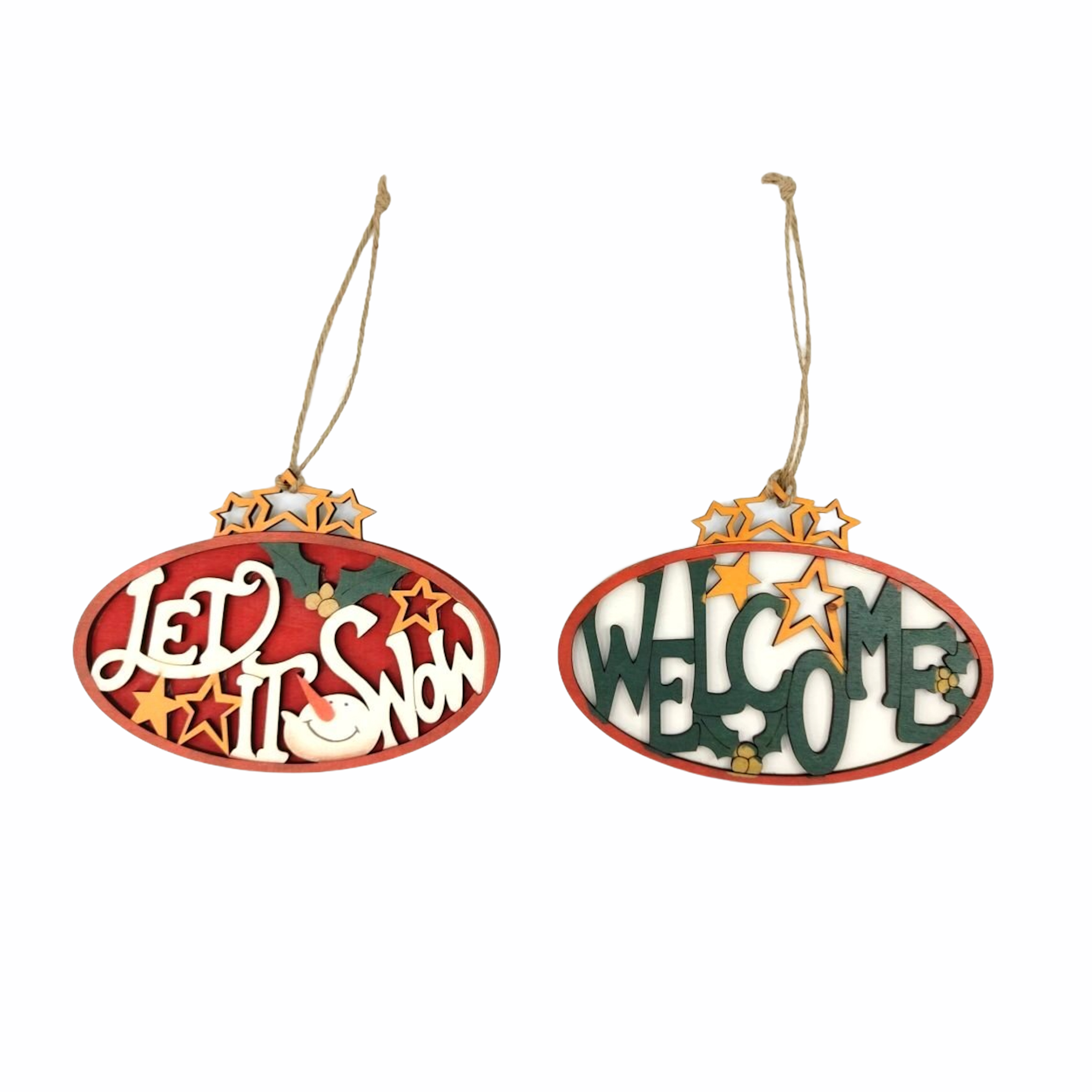 Χριστουγεννιάτικη Κρεμαστή Ταμπέλα Ξύλινη Οβάλ Welcome / Let It Snow 19x14cm