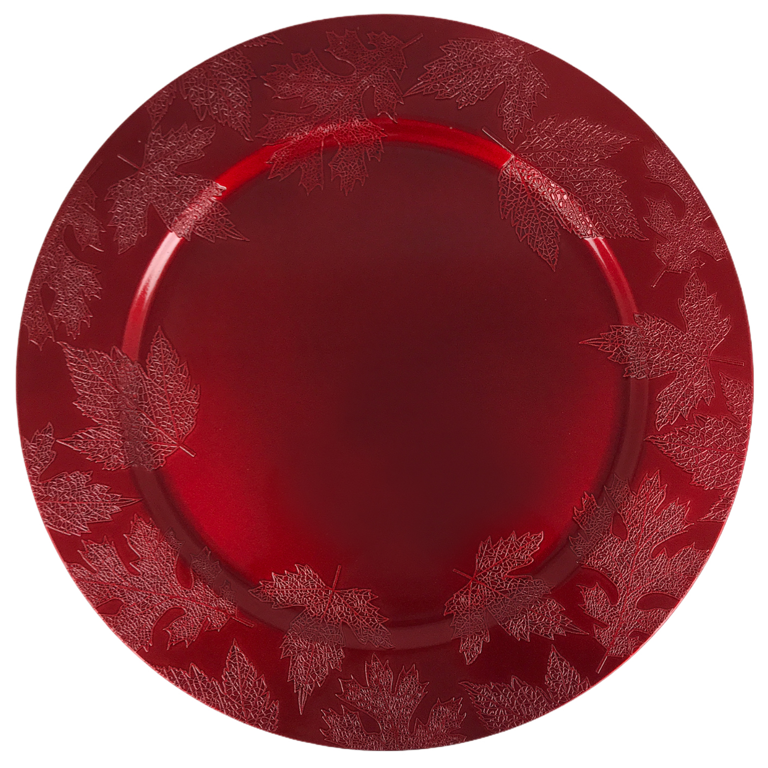 Χριστουγεννιάτικη πιατέλα διακοσμητική, πλαστική, κόκκινη, με ανάγλυφα φύλλα 33cm