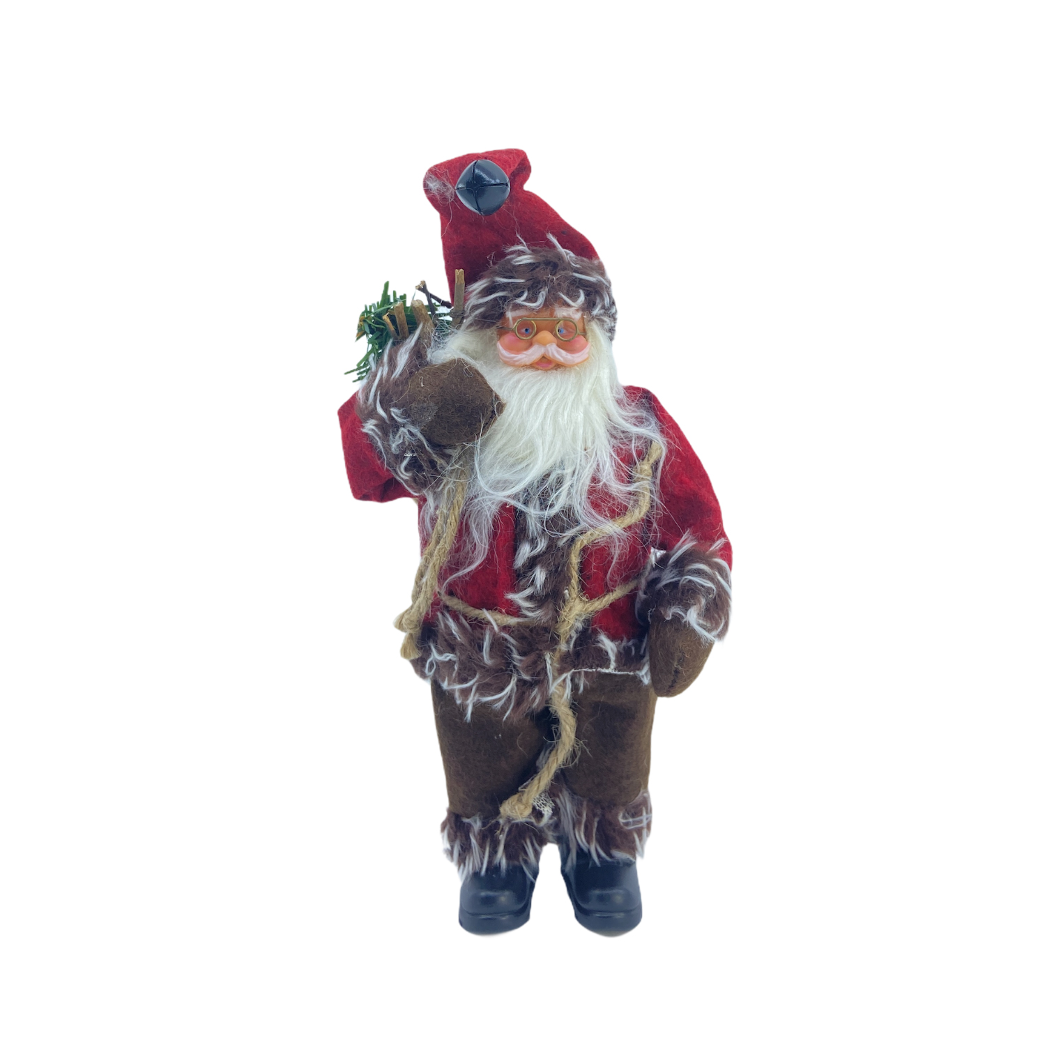 Χριστουγεννιάτικος Αληθοφανής Άη Βασίλης Κόκκινος-Καφέ Σκούφος Κουδουνάκι 23cm