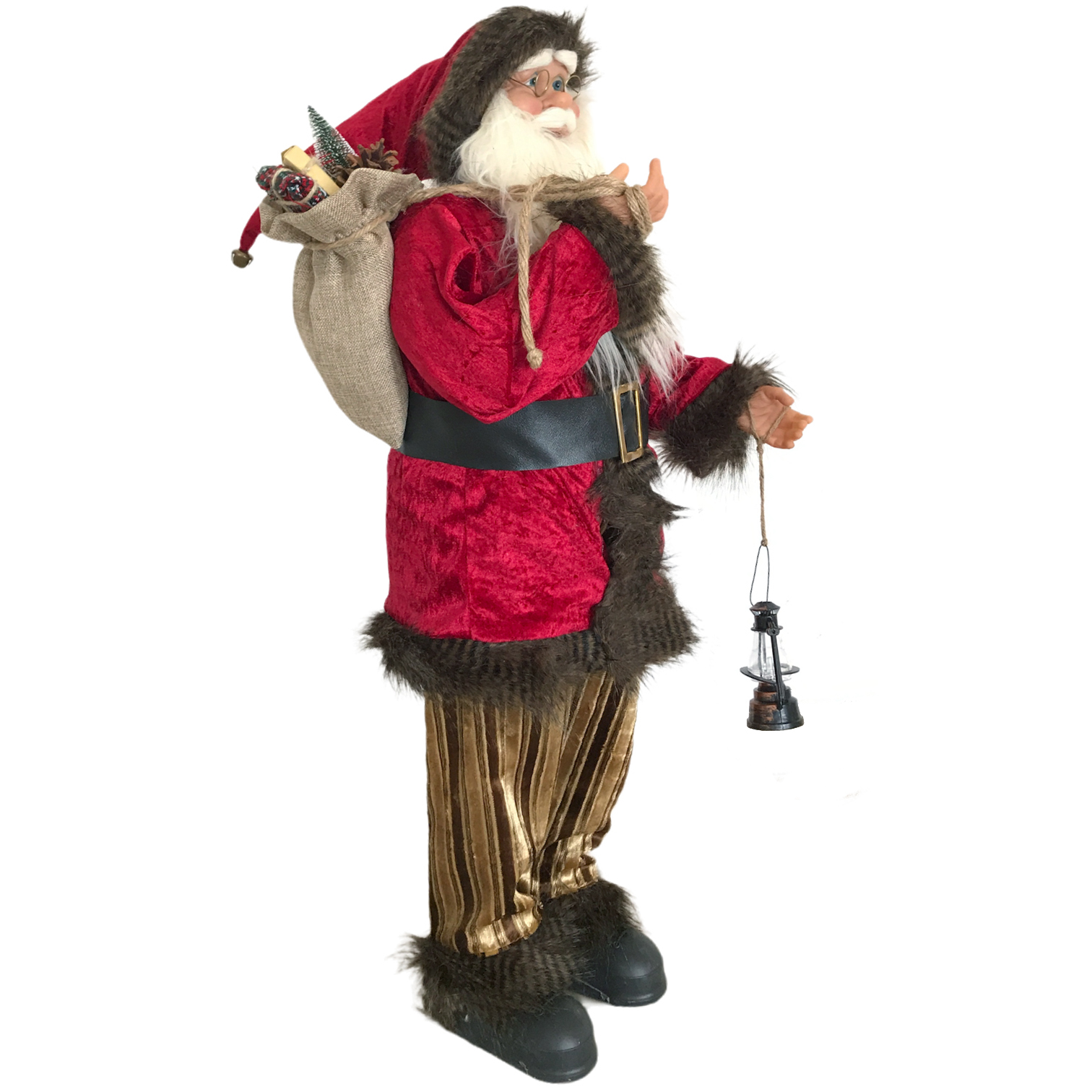 Χριστουγεννιάτικος Αληθοφανής Άη Βασίλης Ριγέ Καφέ Παντελόνι Φανάρι 91cm